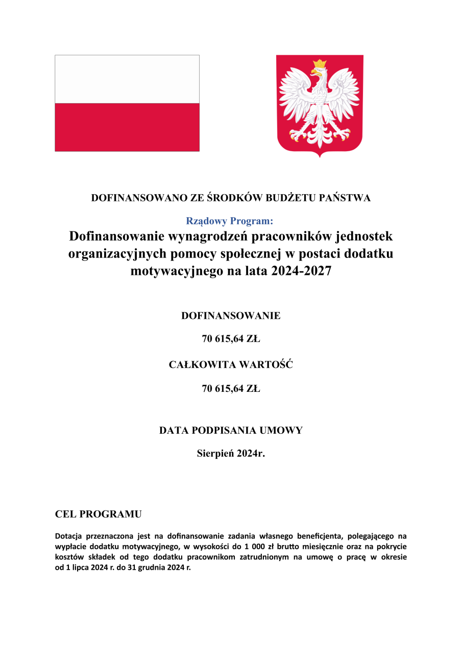 Emilia Kowalewska 30 sierpnia, 2024 Dofinansowanie wynagrodzeń pracowników jednostek organizacyjnych pomocy społecznej w postaci dodatku motywacyjnego na lata 2024-2027