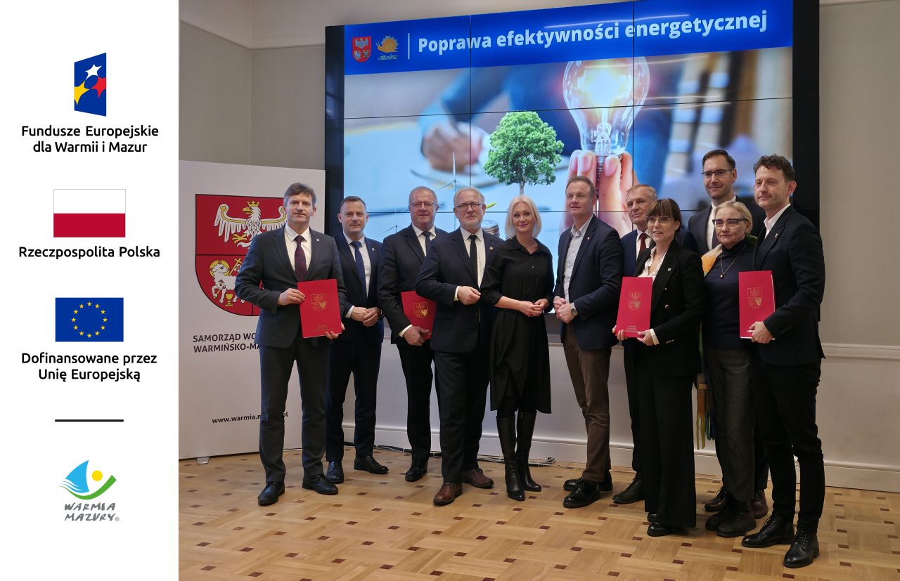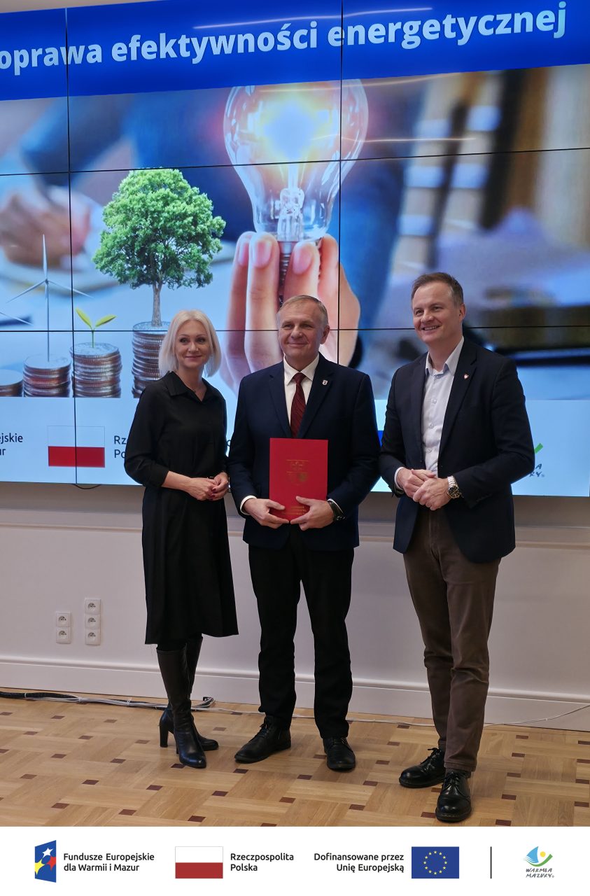 Projekt realizowany w ramach Priorytetu FEWM.02 Środowisko, Działanie FEWM.02.03 Efektywność energetyczna – IIT (Budynki publiczne) programu regionalnego Fundusze Europejskie dla Warmii i Mazur 2021-2027 współfinansowanego ze środków Europejskiego Funduszu Rozwoju Regionalnego na podstawie umowy Nr FEWM.02.03-IZ.00-0013/25 z dnia 26.11.2025 r.
