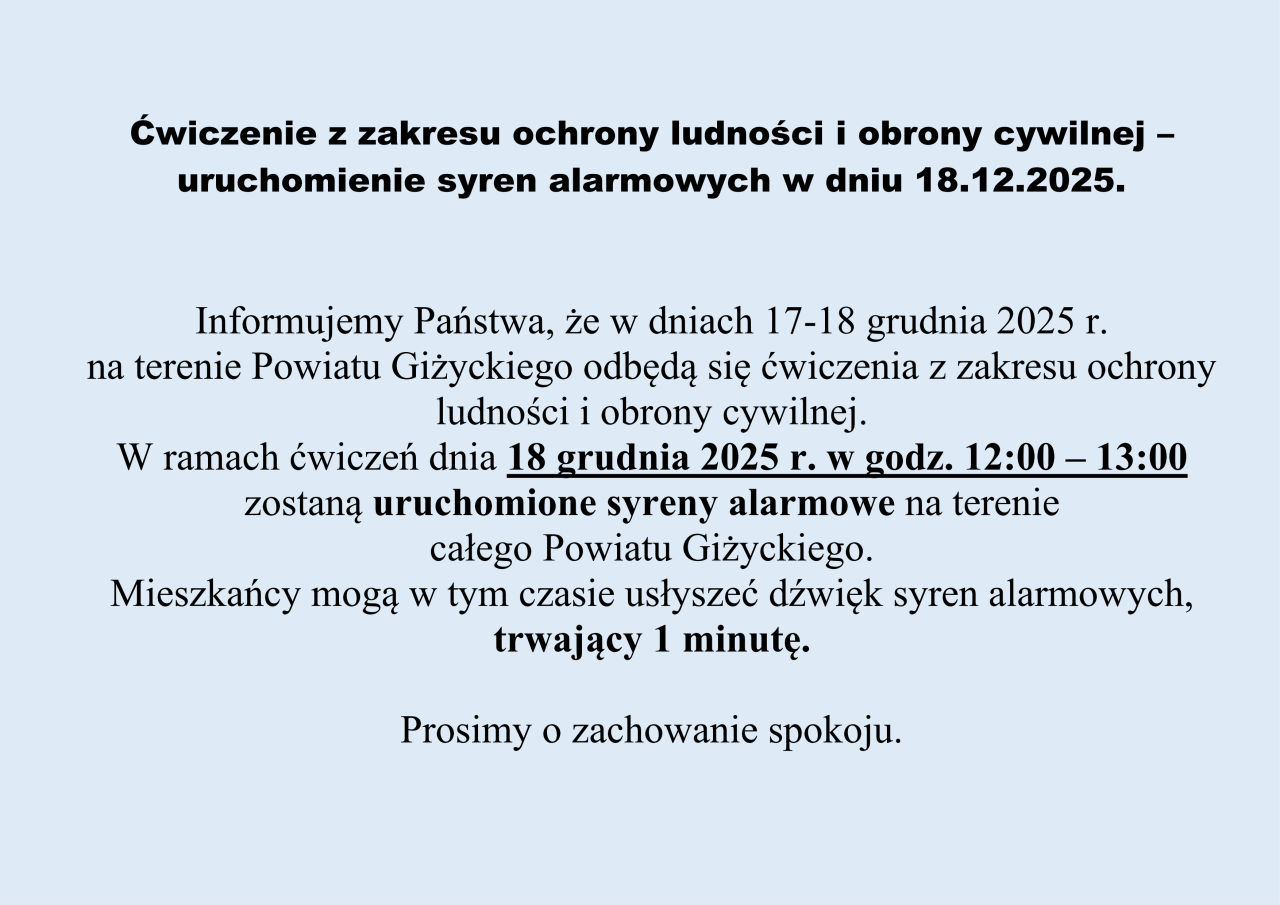 Uruchomienie syren alarmowych w ramach ćwiczeń z zakresu ochrony ludności i obrony cywilnej