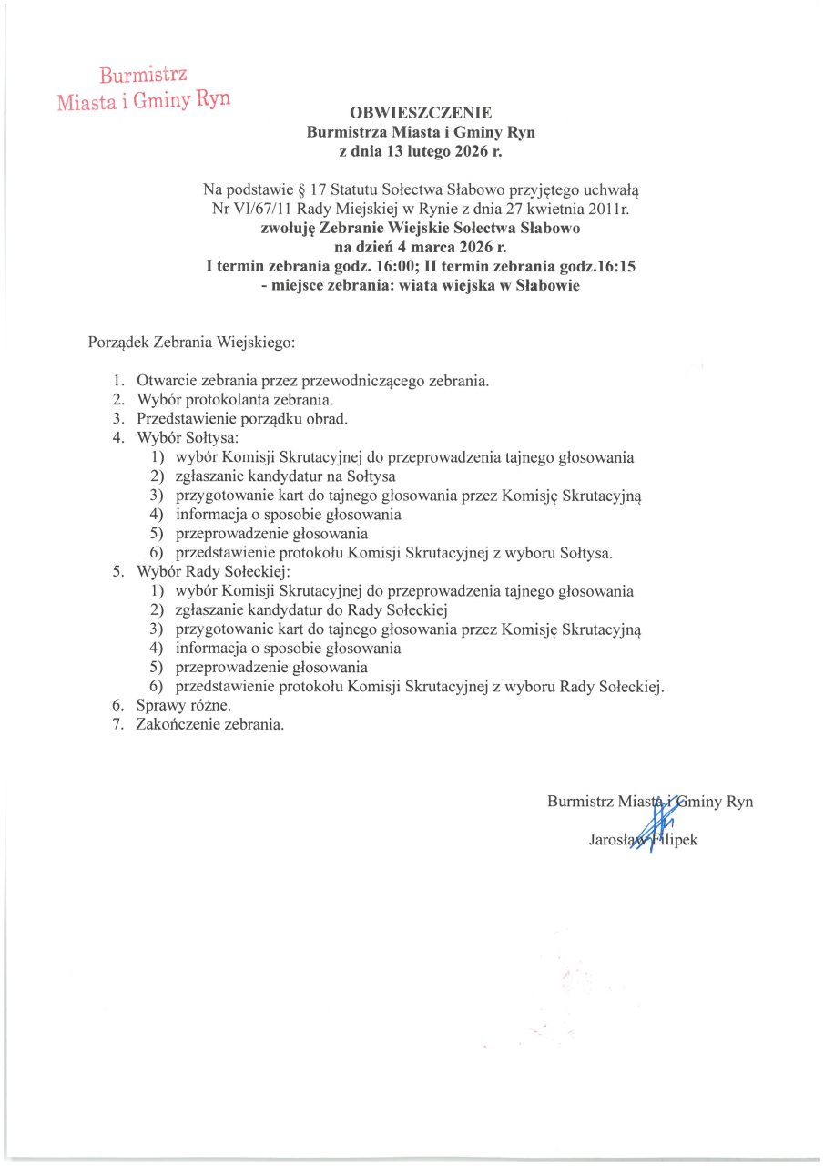 Zebranie Wiejskie Sołectwa Słabowo